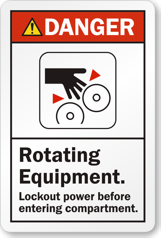 ANSI Danger Lock Out Label: Rotating Equipment - Lockout Power Before Entering Compartment (with Pinch Point Symbol) LB-2427