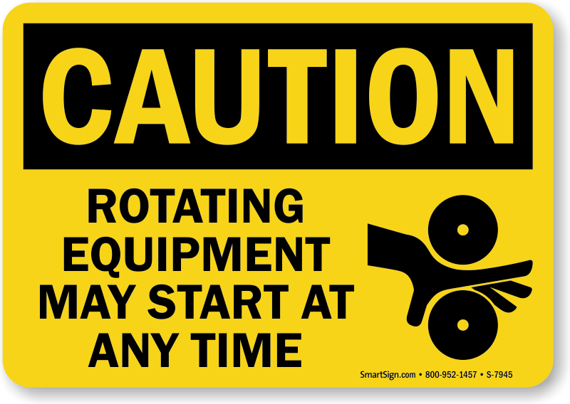 Rotating machinery can start at any time, so make sure everyone is aware.