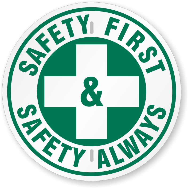 Circular Safety Slogan Sign: Safety First & Safety Always (with Plus Symbol) Learn More...