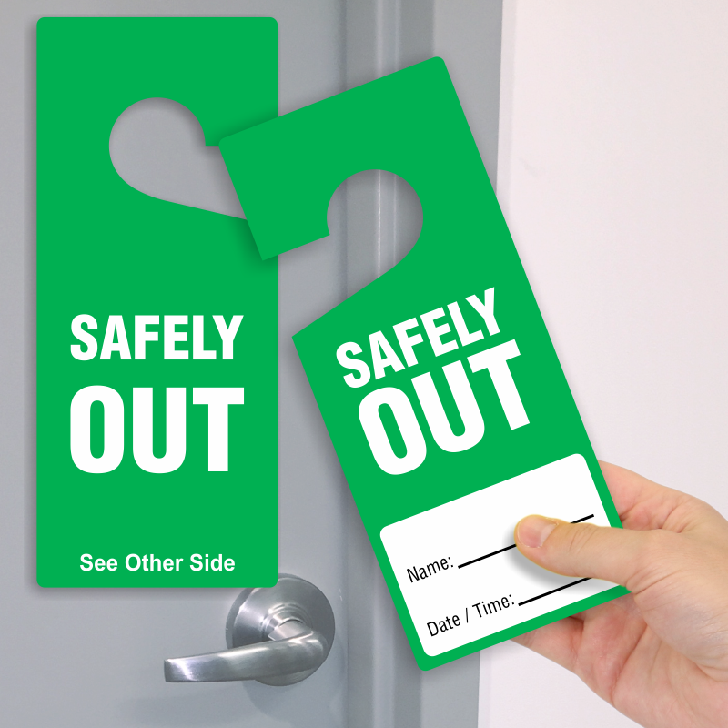 Two Sided Plastic Door Hang Tag: Safety Out Name:___ Date/Time:____ TG-1479