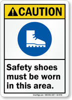 ANSI Caution Sign: Safety Shoes Must Be Worn In This Area (With Graphic)