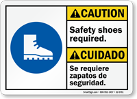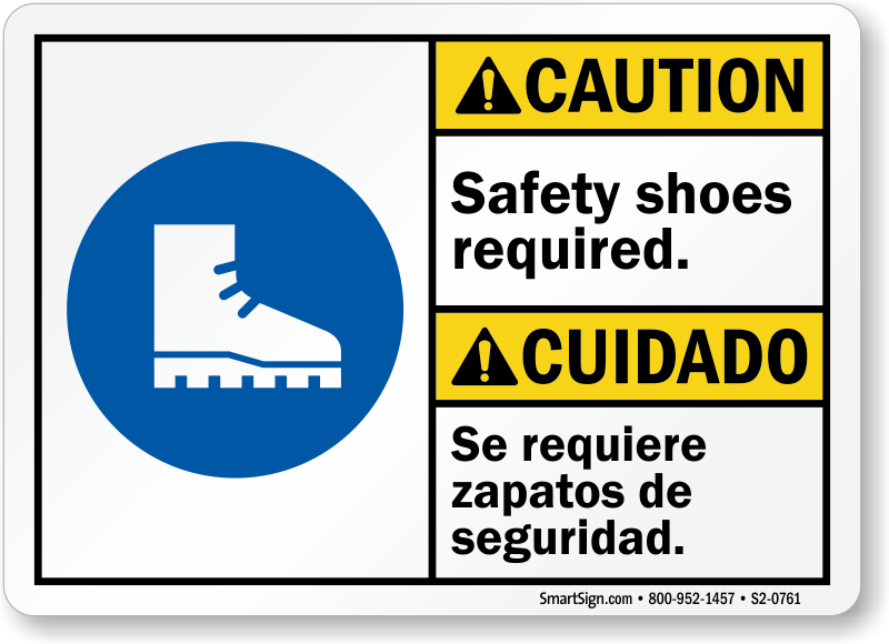 Bilingual ANSI Caution / Cuidado Sign: Safety Shoes Required / Se Requiere Zapatos De Seguridad