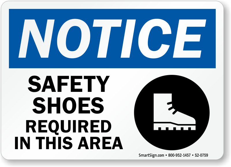 OSHA Notice Sign: Safety Shoes Required In This Area (With Graphic)