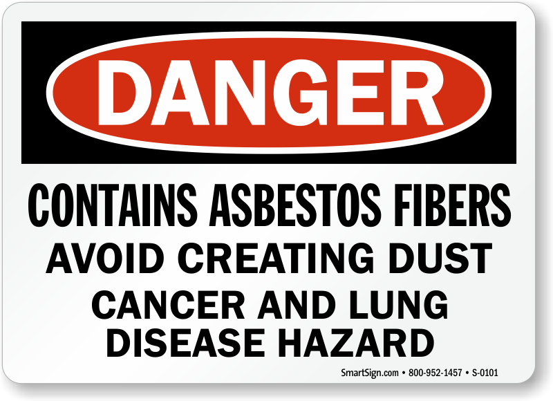 OSHA Danger Sign: Contains Asbestos Fibers, Avoid Creating Dust Cancer And Lung Disease Hazard Learn More...
