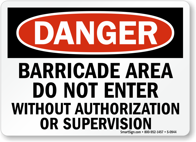 OSHA Danger Sign: Barricade Area Do Not Enter Without Authorization Or Supervision S-0944
