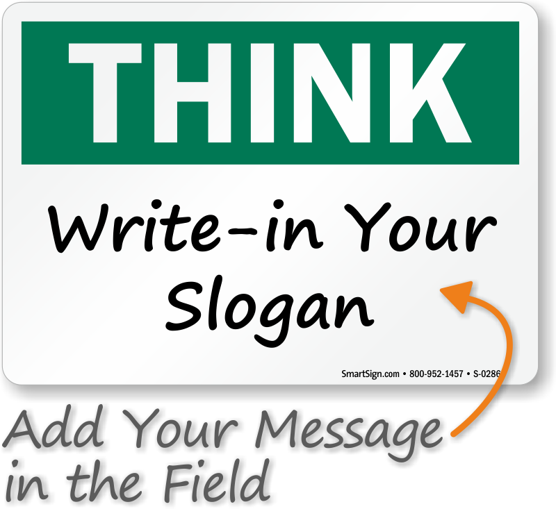 Make your safety message clear. Use a "think (blank)" sign.
