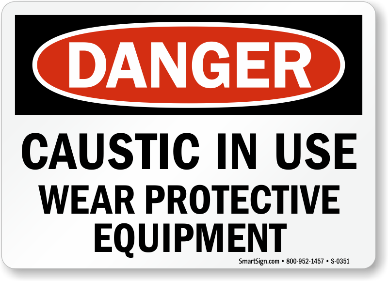 OSHA Danger Sign: Caustic In Use Wear Protective Equipment