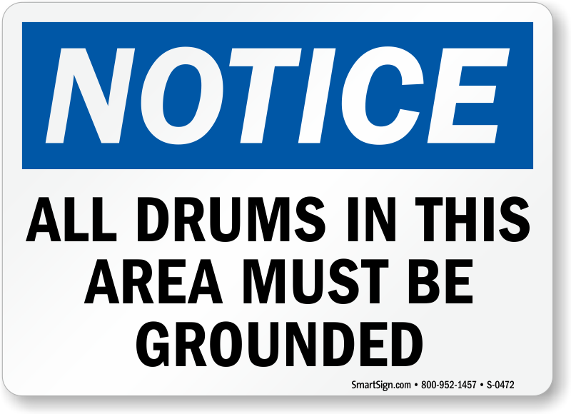 OSHA Notice Sign: All Drums In This Area Must Be Grounded S-0472