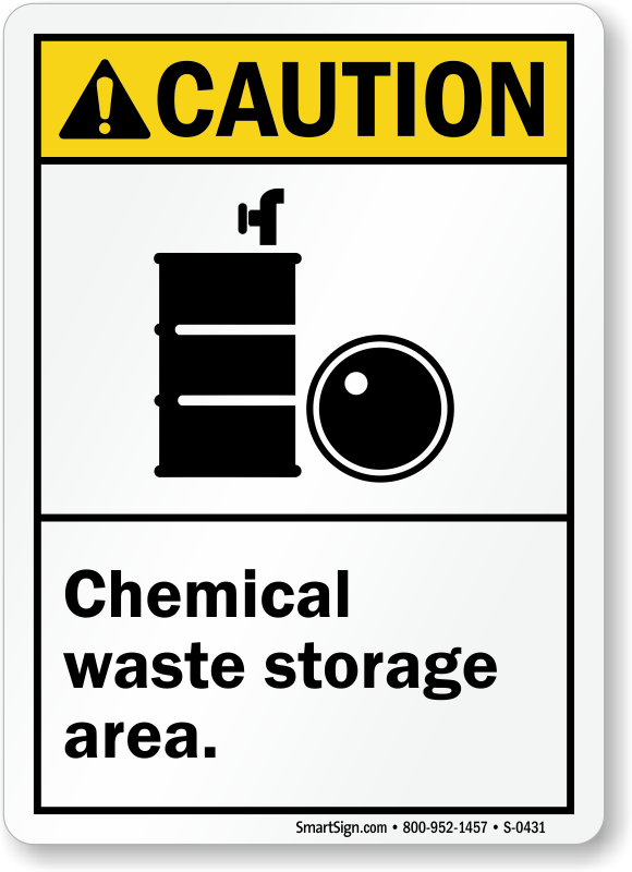 Don’t let accidental exposure happen. Use a "chemical waste storage area (with graphic)" sign.