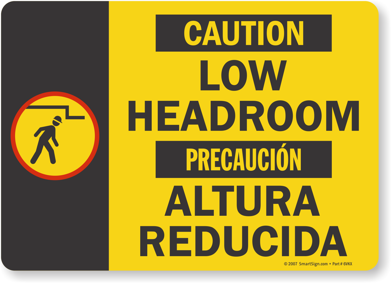 Make sure that everyone is aware of the danger, so they don't hit their head. This bilingual sign will easily inform a large range of people.