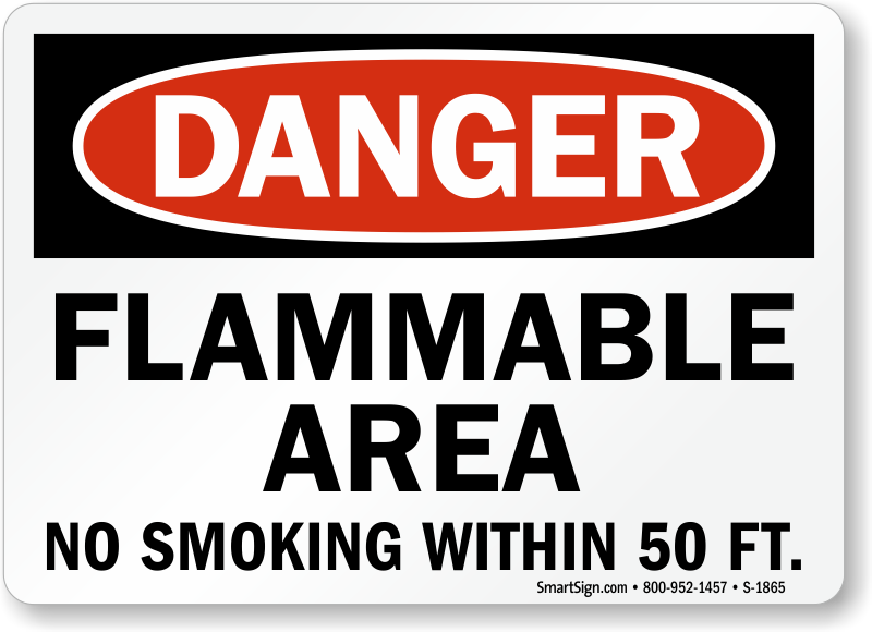 Smoking around flammable materials poses a fire hazard. Post this OSHA danger sign to prevent people from lighting up within 50 feet of areas where it may cause a fire.