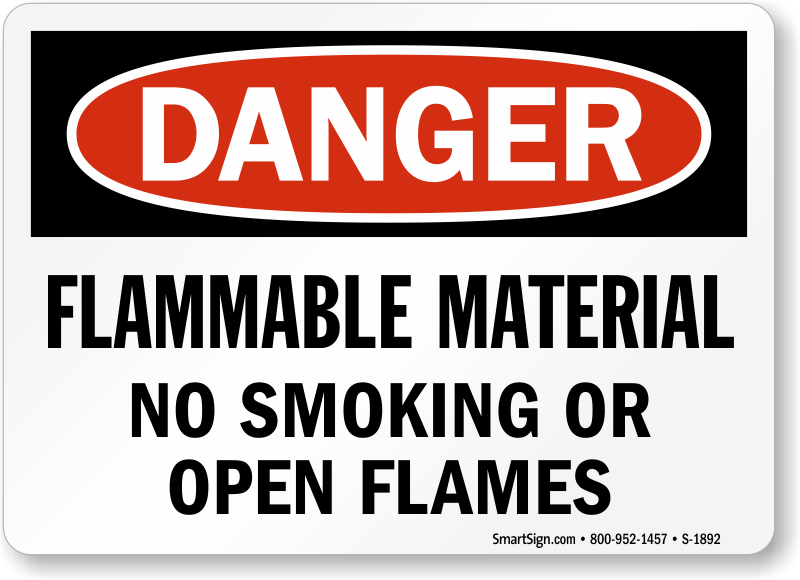 Be sure everyone keeps open flames away from flammable material with this straightforward Danger sign.