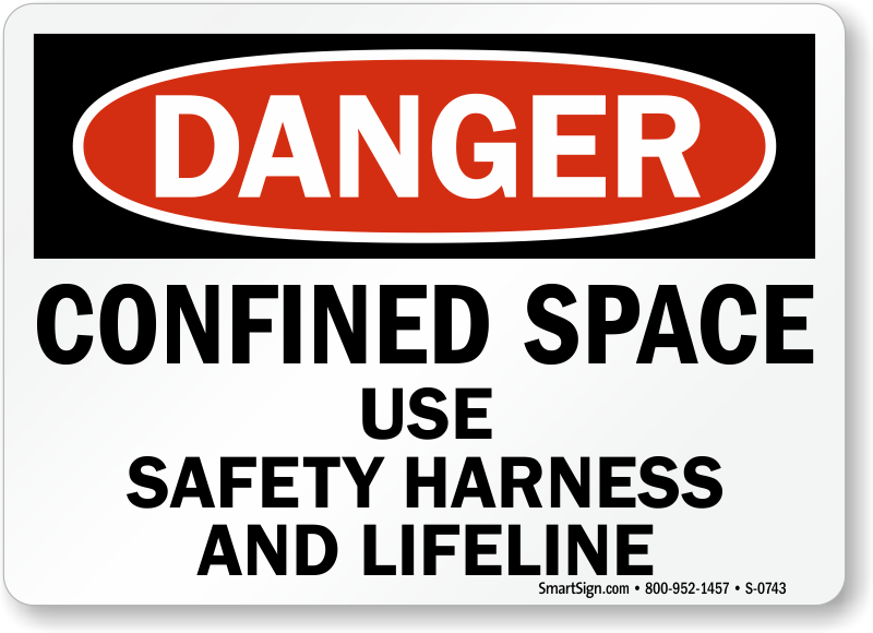 Use a "confined space use safety harness and lifeline" sign. Demonstrate your commitment to avoiding accidents.