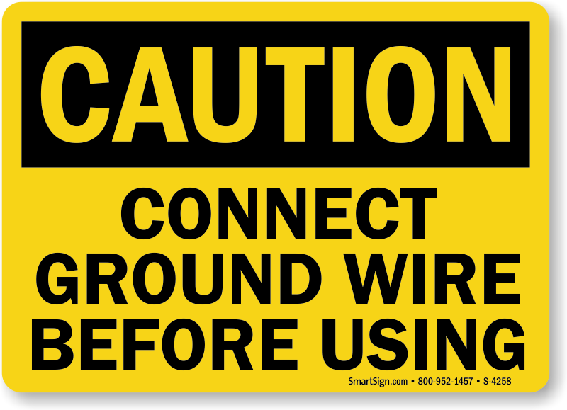OSHA Caution Sign: Connect Ground Wire Before Using S-4258