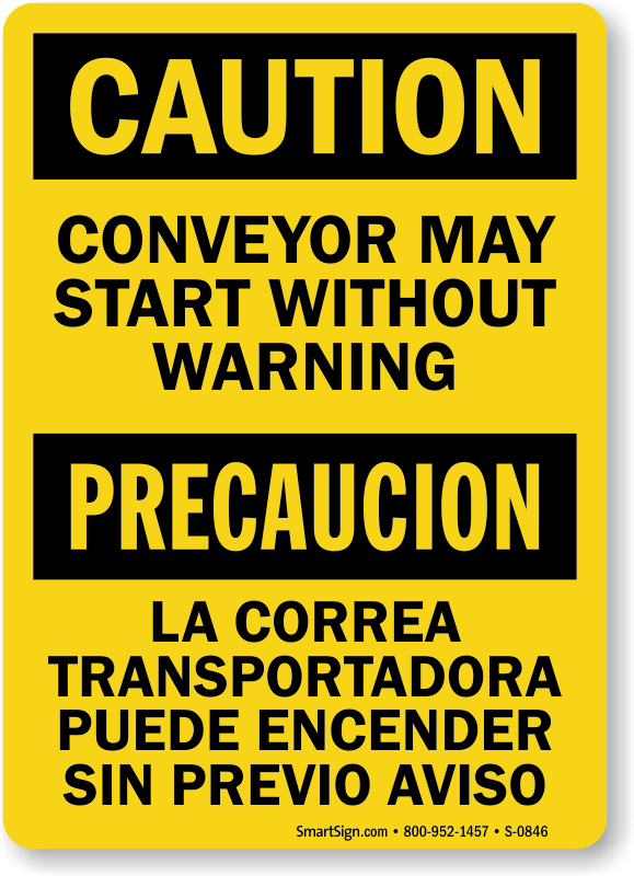 Bilingual OSHA Caution / Precaucion Sign: Conveyor May Start Without Warning