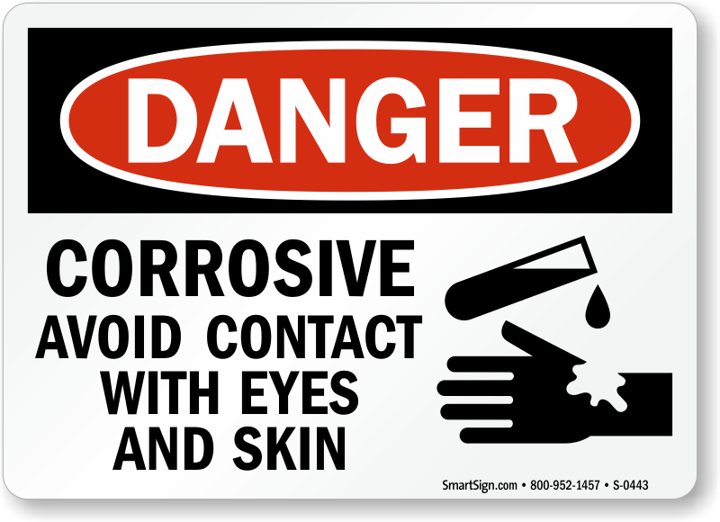 Use a "corrosive avoid contact with eyes and skin" sign.