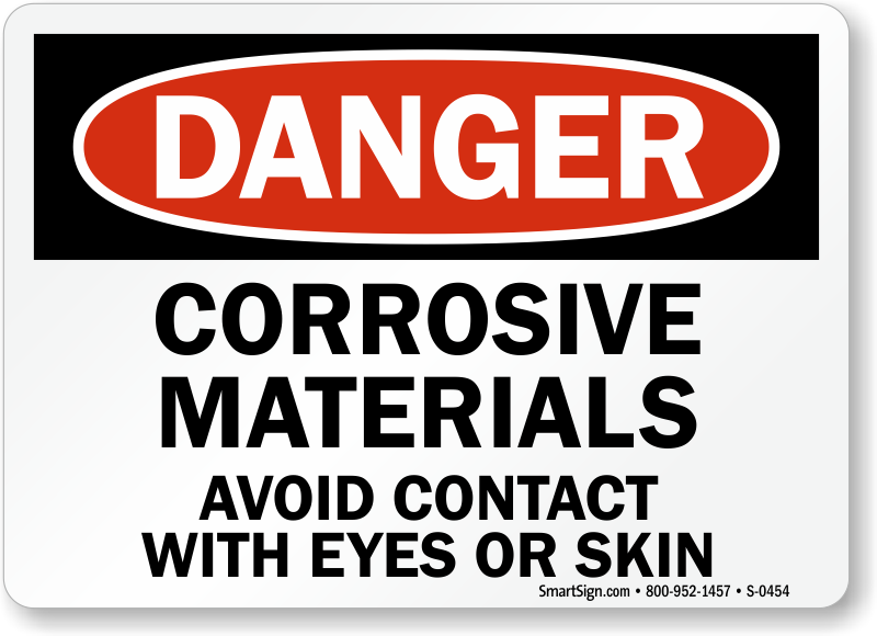 OSHA Danger Sign: Corrosive Materials Avoid Contact With Eyes Or Skin