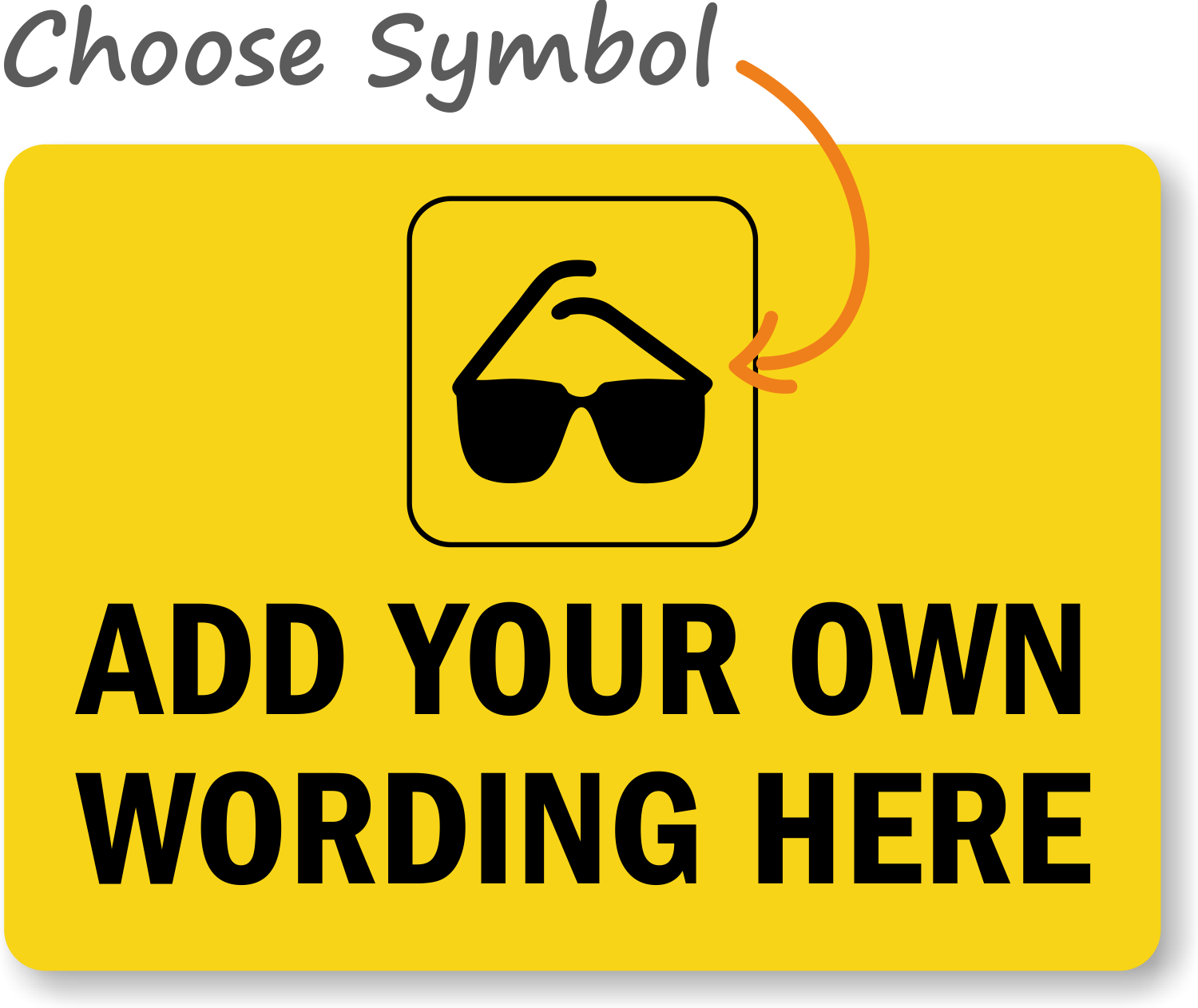 Make a personal statement with a custom sign. Use a Custom yellow sign with sunglasses graphic. Signs work - they guard against forgetfulness.