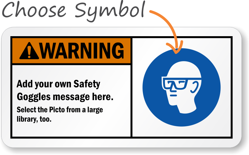 Say exactly what you want, how you want it. Post a Custom message sign with a safety googles graphic.