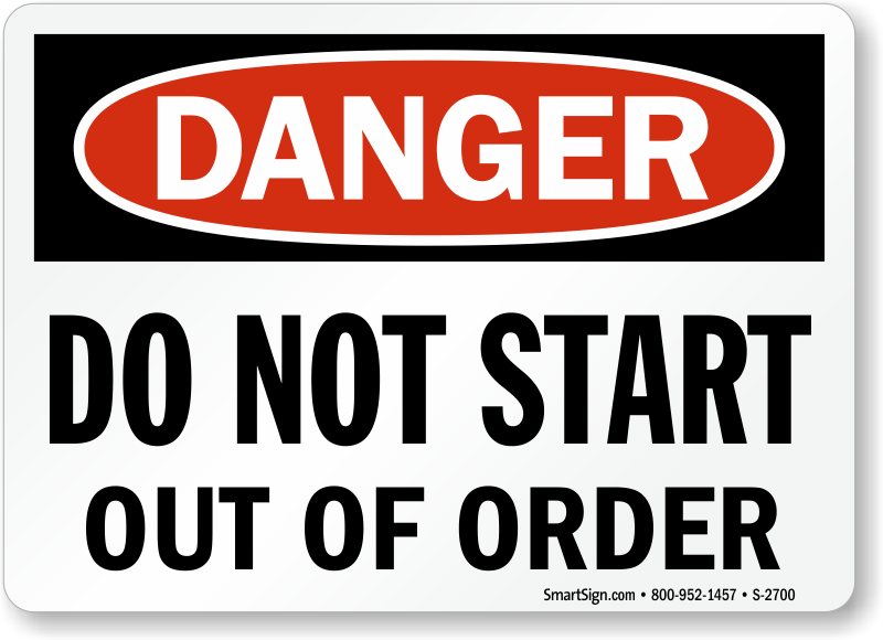 A Danger "do not start out of order" sign can make a huge difference. In your workplace.