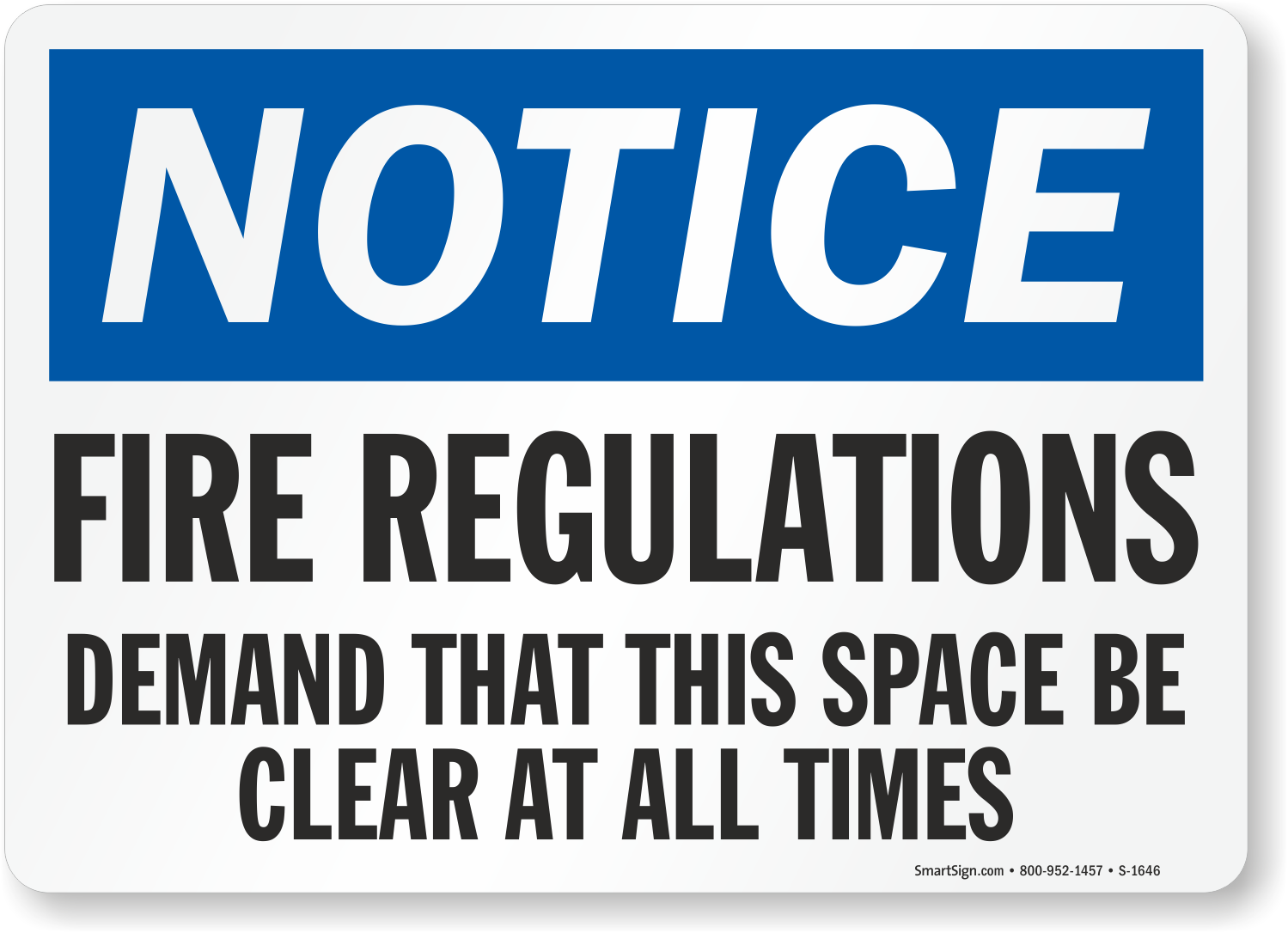 Be prepared for an emergency. Use a "fire regulations demand that this space be clear at all times" sign.