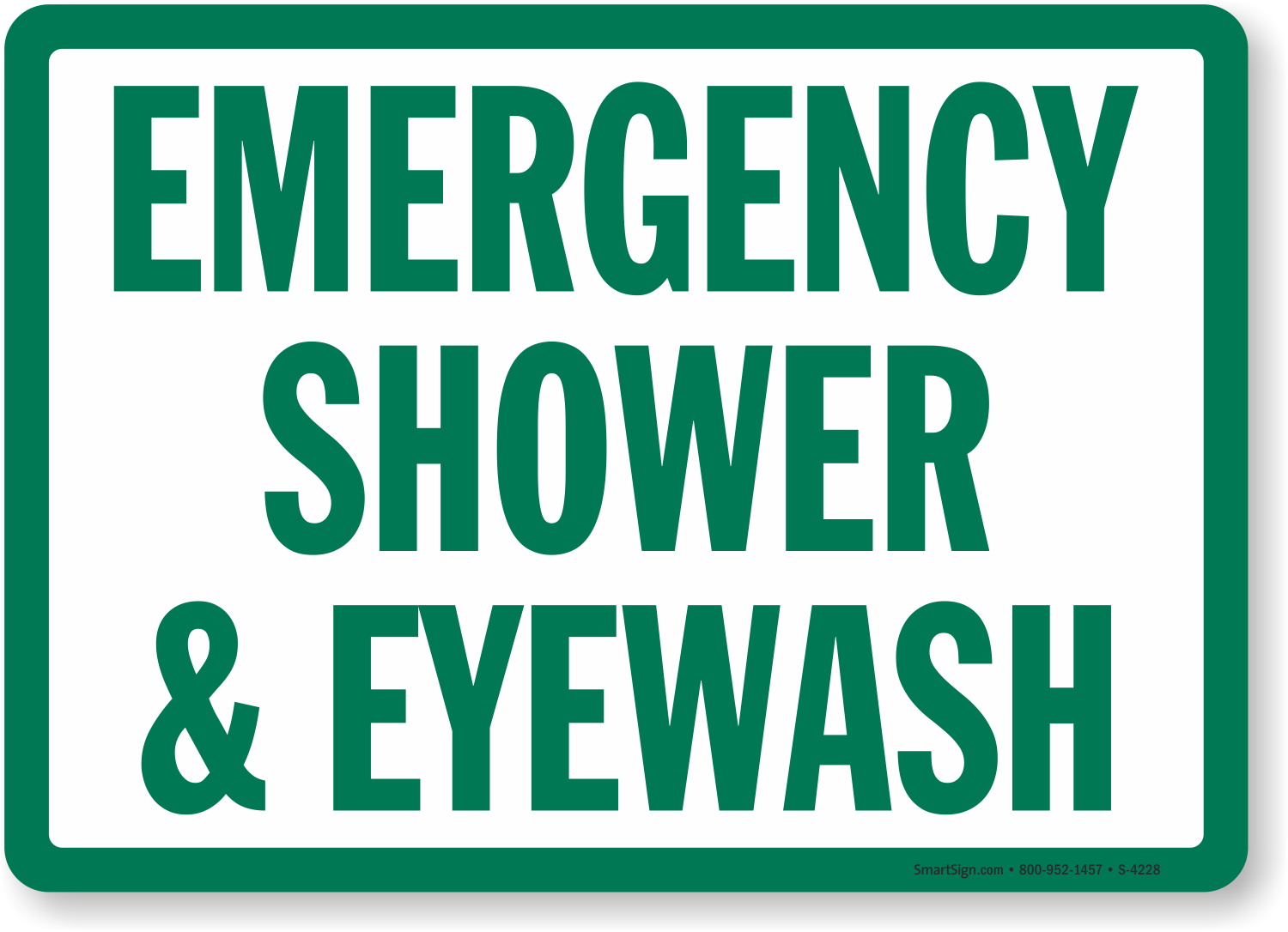 Use a "emergency shower & eyewash" sign. A sign is powerful.