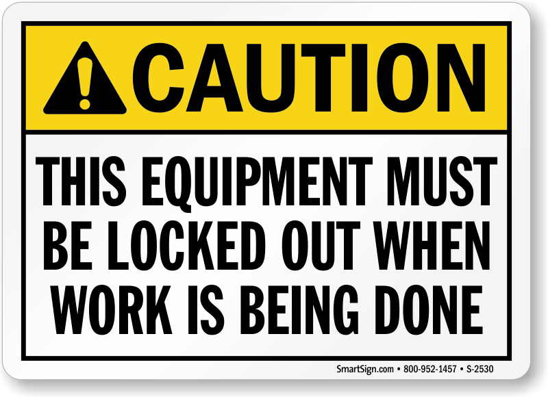 ANSI Caution Sign: This Equipment Must Be Locked Out When Work Is Being Done S-2530