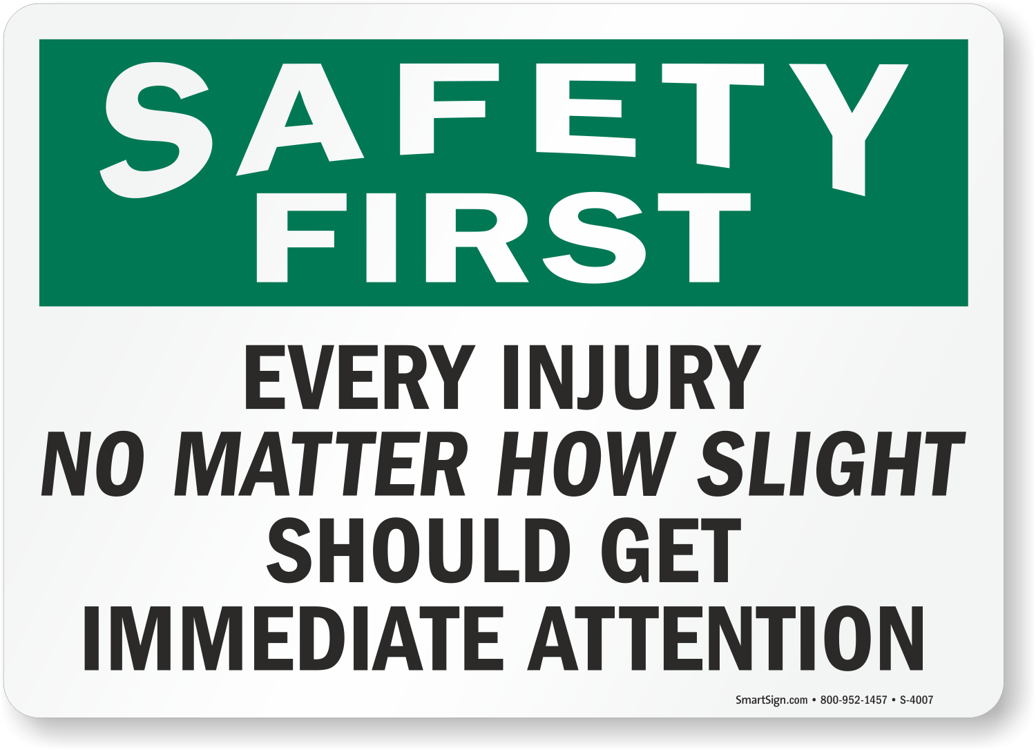 Accidents must be reported. Use a "every injury, no matter how slight, should get immediate attention" sign.