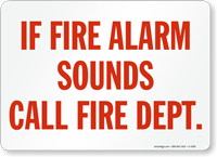 Fire Alarm Sign: If Fire Alarm Sounds Call Fire Dept.