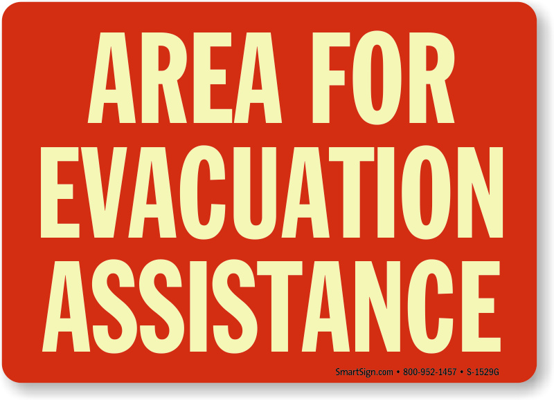 Make fire safety a priority. Use a "area for evacuation assistance (white on red)" sign. A sign is proven and effective.