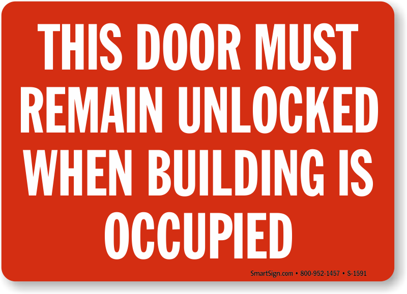 In an emergency, fire safety signs are critically important. Use a "this door must remain unlocked when building is occupied" sign. Don't ignore emergency equipment.