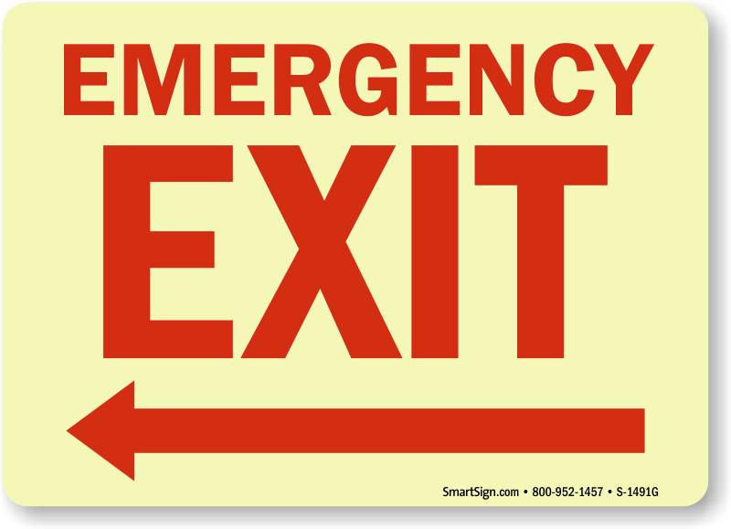 Be prepared for an emergency. Use a "emergency exit (arrow left)" sign. A sign makes a difference.