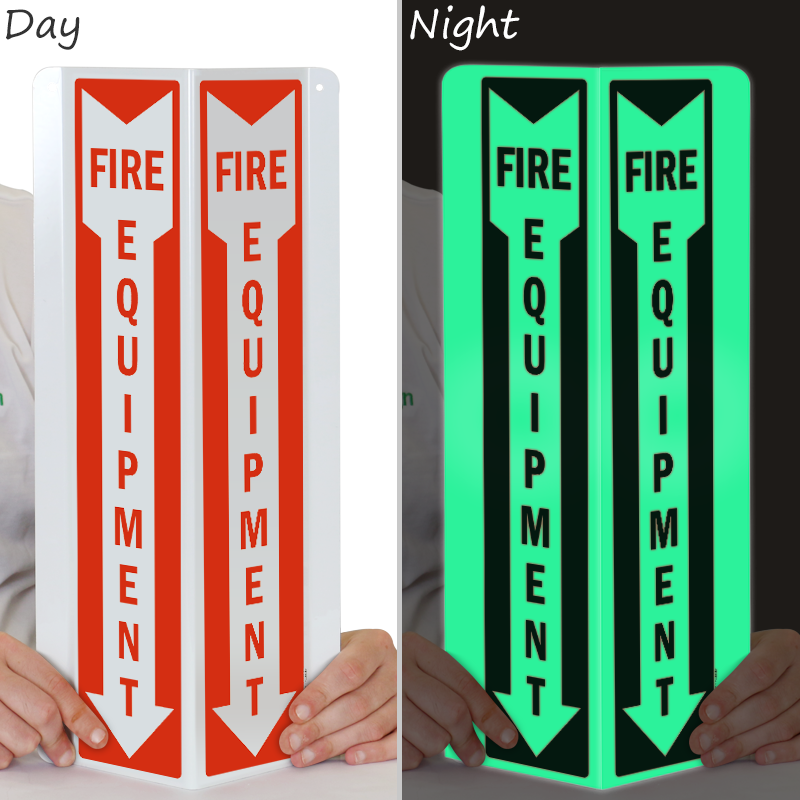 Make fire safety a priority. Use a "fire equipment (arrow)" sign. Improve safety - with a sign!