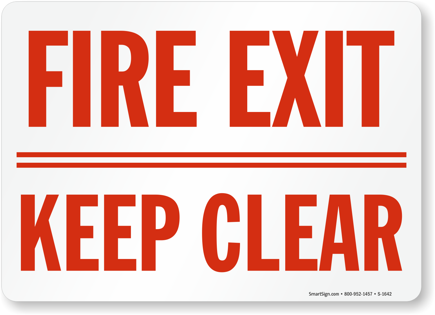 Be prepared for an emergency. Use a "fire exit keep clear" sign. A sign emphasizes your attention to safety.