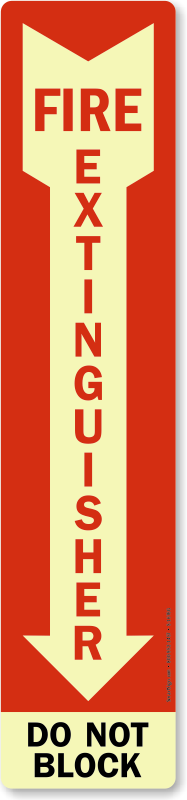 Make sure that you are prepared for an emergency. Use a "fire extinguisher do not block (arrow)" sign. A sign makes a big difference.