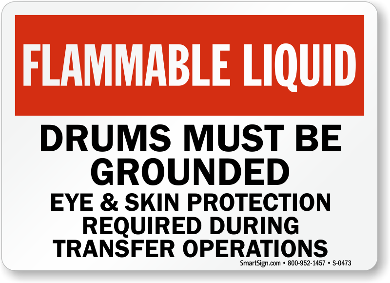 Use a "flammable liquid drums must be grounded eye & skin protection required during transfer operations" sign. Signs work - they guard against carelessness.