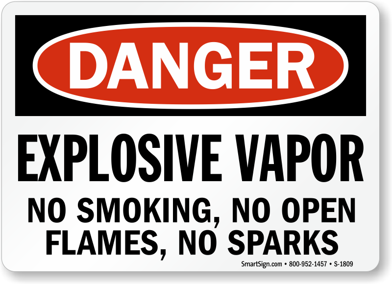 OSHA Danger Sign: Explosive Vapor - No Smoking, No Open Flames, No Sparks S-1809