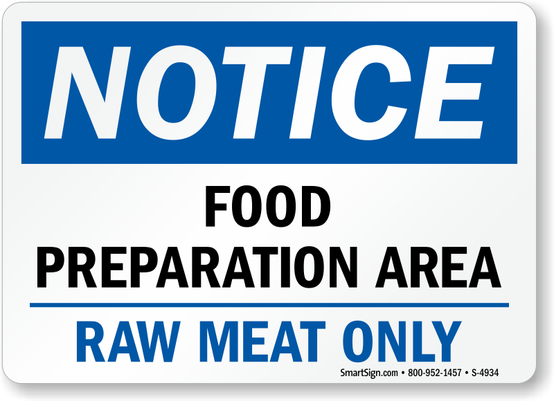 Choose a Food Preparation Area sign that makes your message clear. A Raw Meat Only sign can keep your kitchen clean and sanitary.