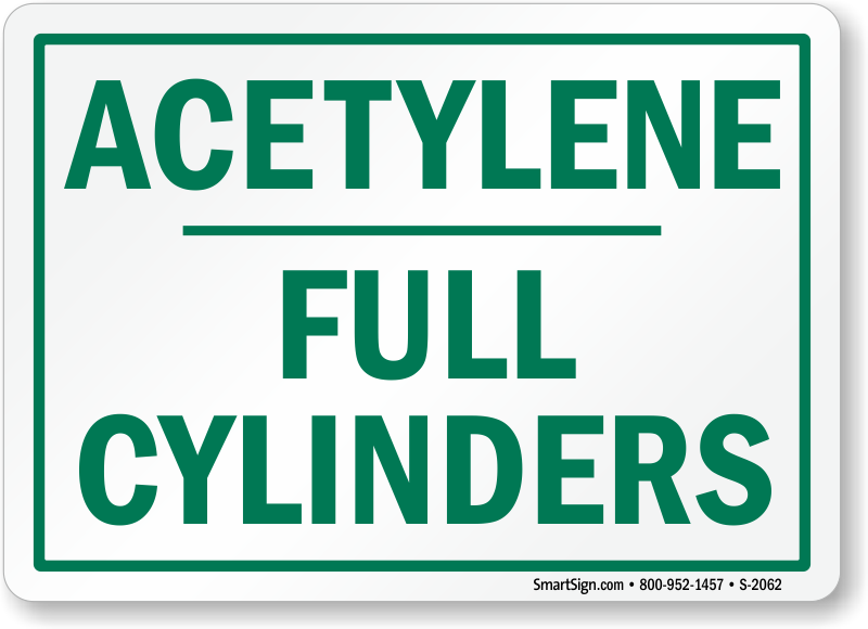 Save employees from potential flammable incidents with a green and white acetylene sign to let them know the cylinders are full.