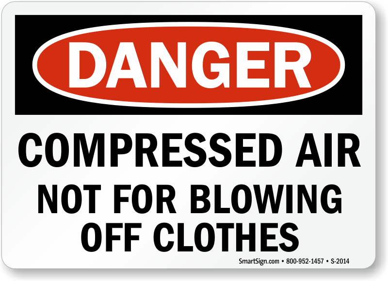 Use a "compressed air not for blowing off clothes" sign. Lead by example - show how much you care about safety.