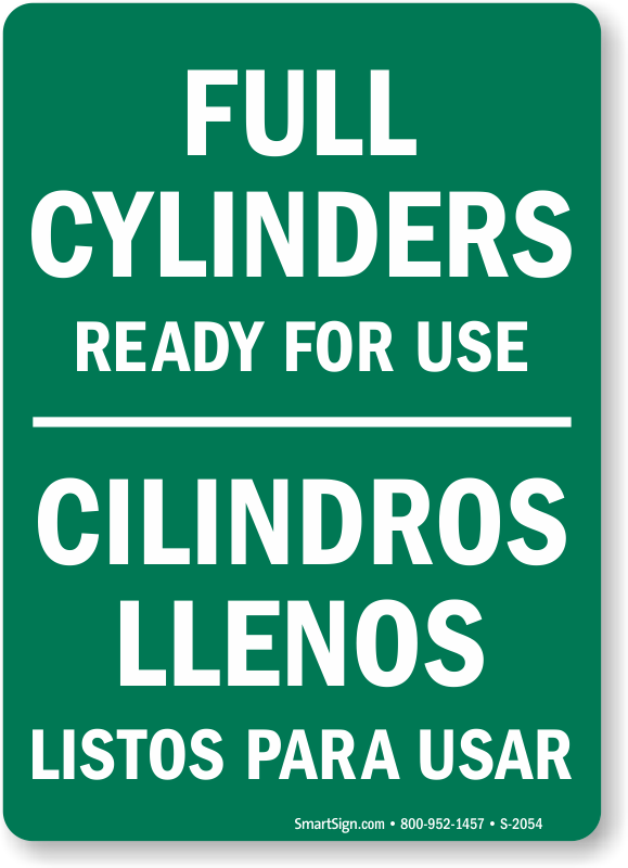 Bilingual Gas Cylinder Sign: Full Cylinders Ready For Use / Cilindroas Llenos Listos Para Usar
