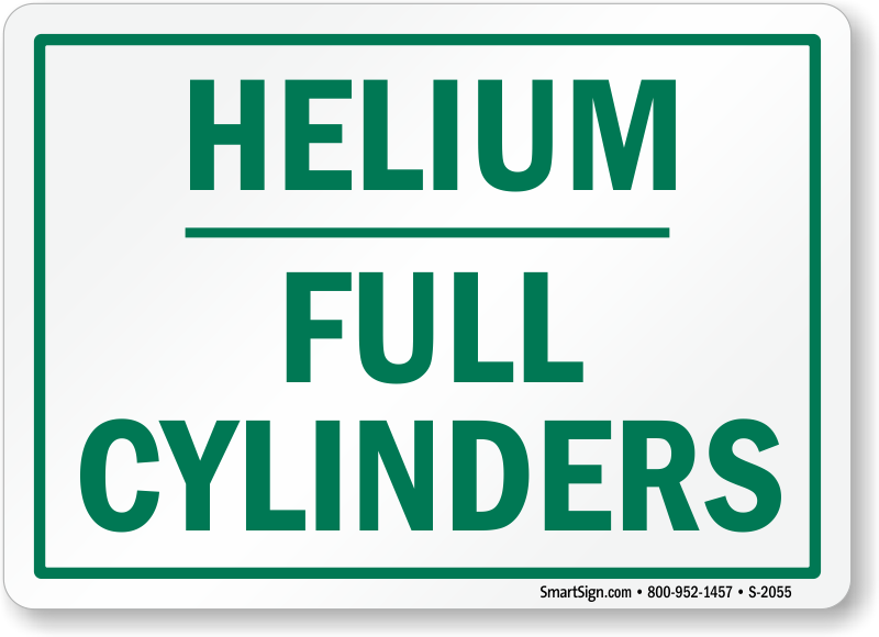 Gas Cylinder Compressed Gas Sign: Helium Full Cylinders