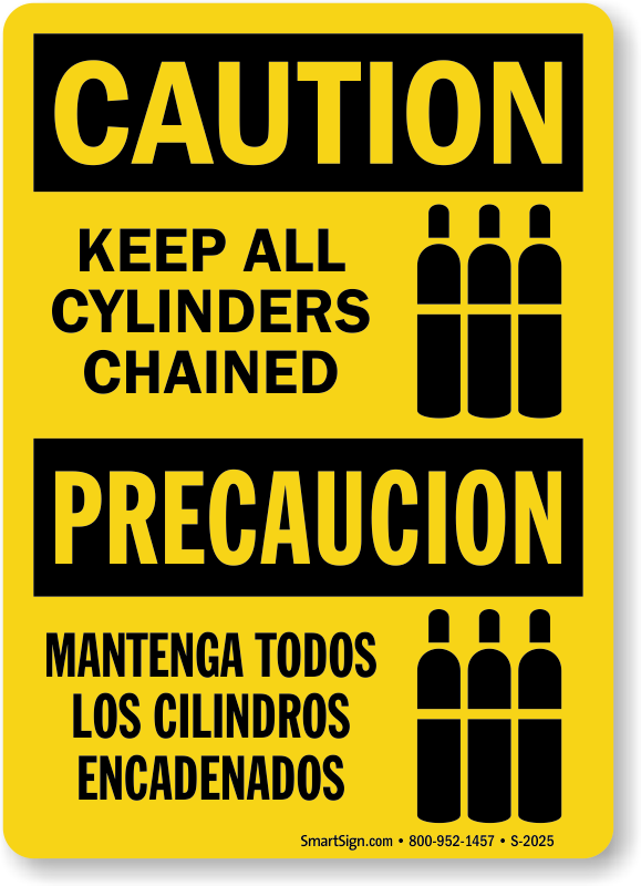 Use a "keep all cylinders chained (with graphic) (bilingual)" sign.