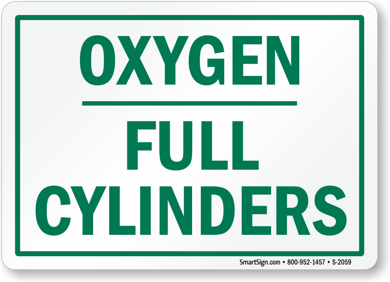The green and white Oxygen sign encourages workers to take care when storing or moving cylinders.
