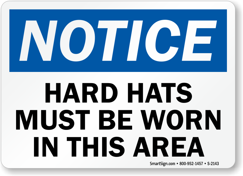 OSHA Notice Wear Head Protection Sign: Hard Hats Must Be Worn In This Area