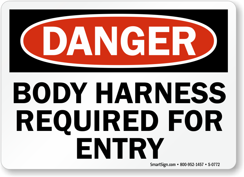 OSHA Danger Sign: Body Harness Required For Entry