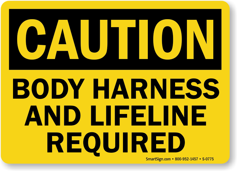 OSHA Caution Sign: Body Harness And Lifeline Required