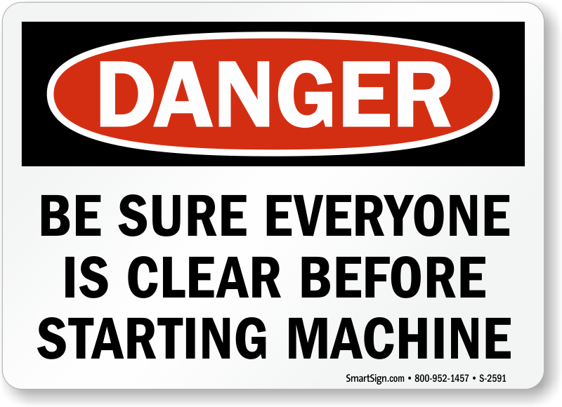 Use a "be sure everyone is clear before starting machine" sign. Reaffirm the importance of avoiding accidents.