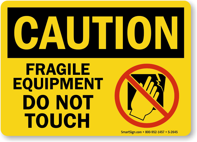 Use a "fragile equipment do not touch (with graphic)" sign.