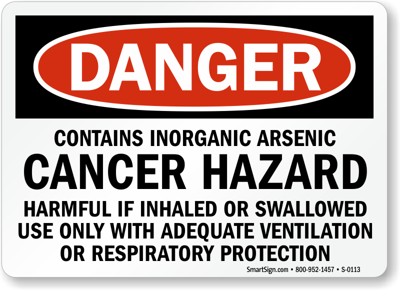 Use a "contains inorganic arsenic cancer hazard harmful if inhaled or swallowed use only with adequate ventilation or respiratory protection" sign.